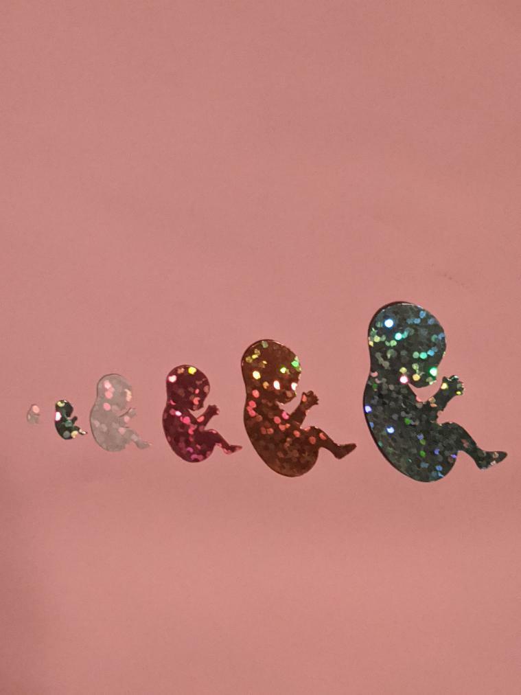 These baby spangles are a life-size scale of babies at 5-10 weeks gestation.