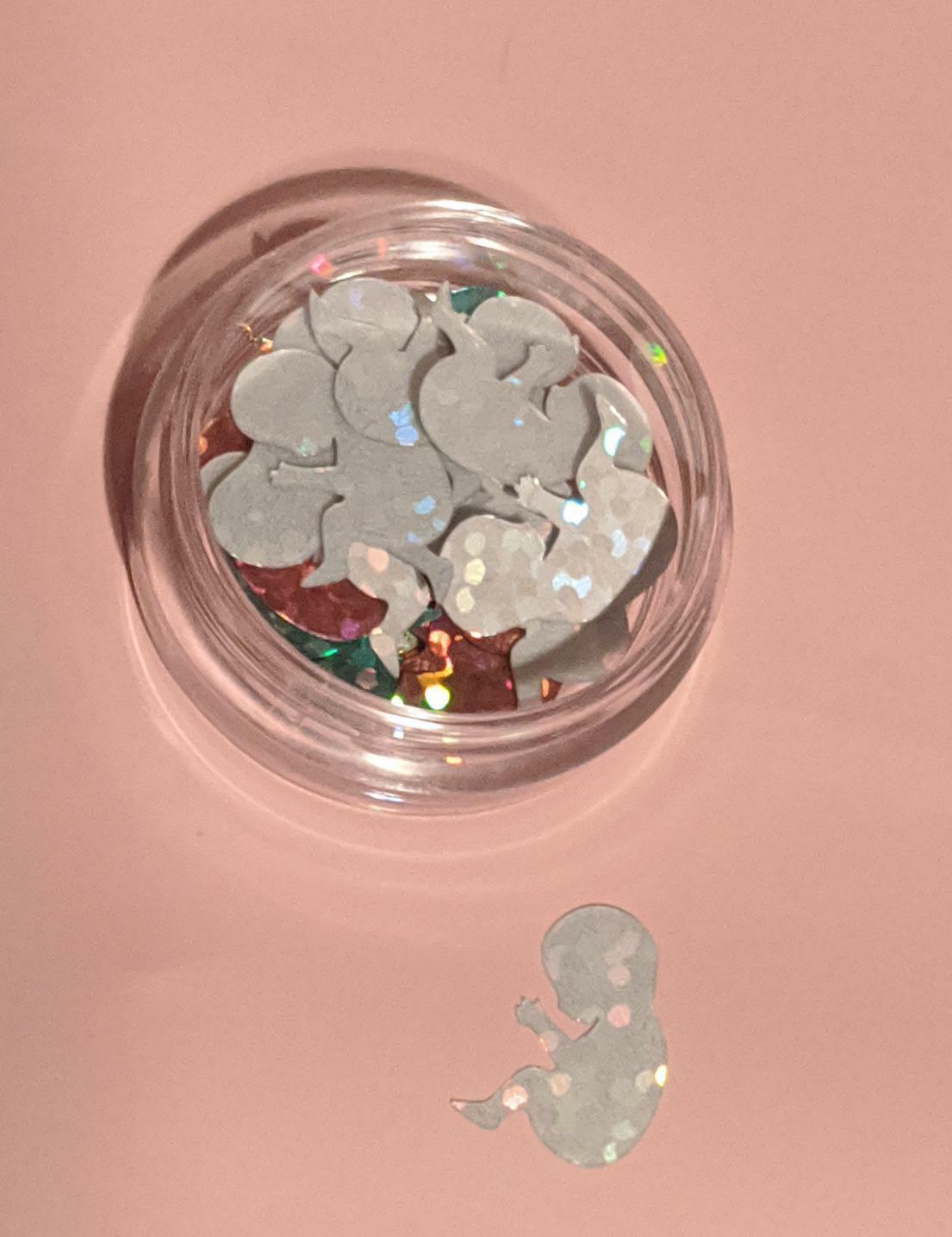 These baby spangles are a real-life size of babies at 7 weeks gestation.