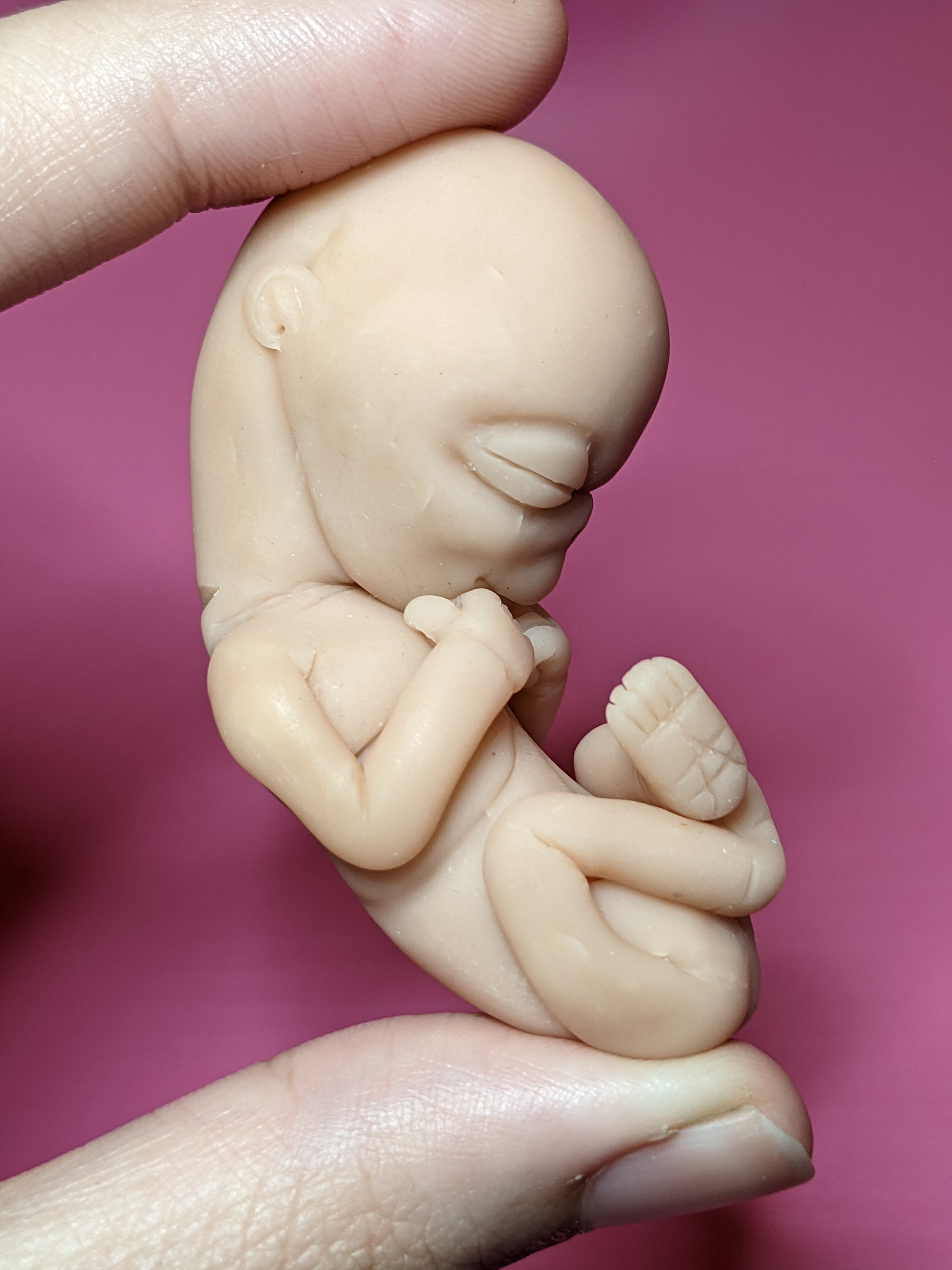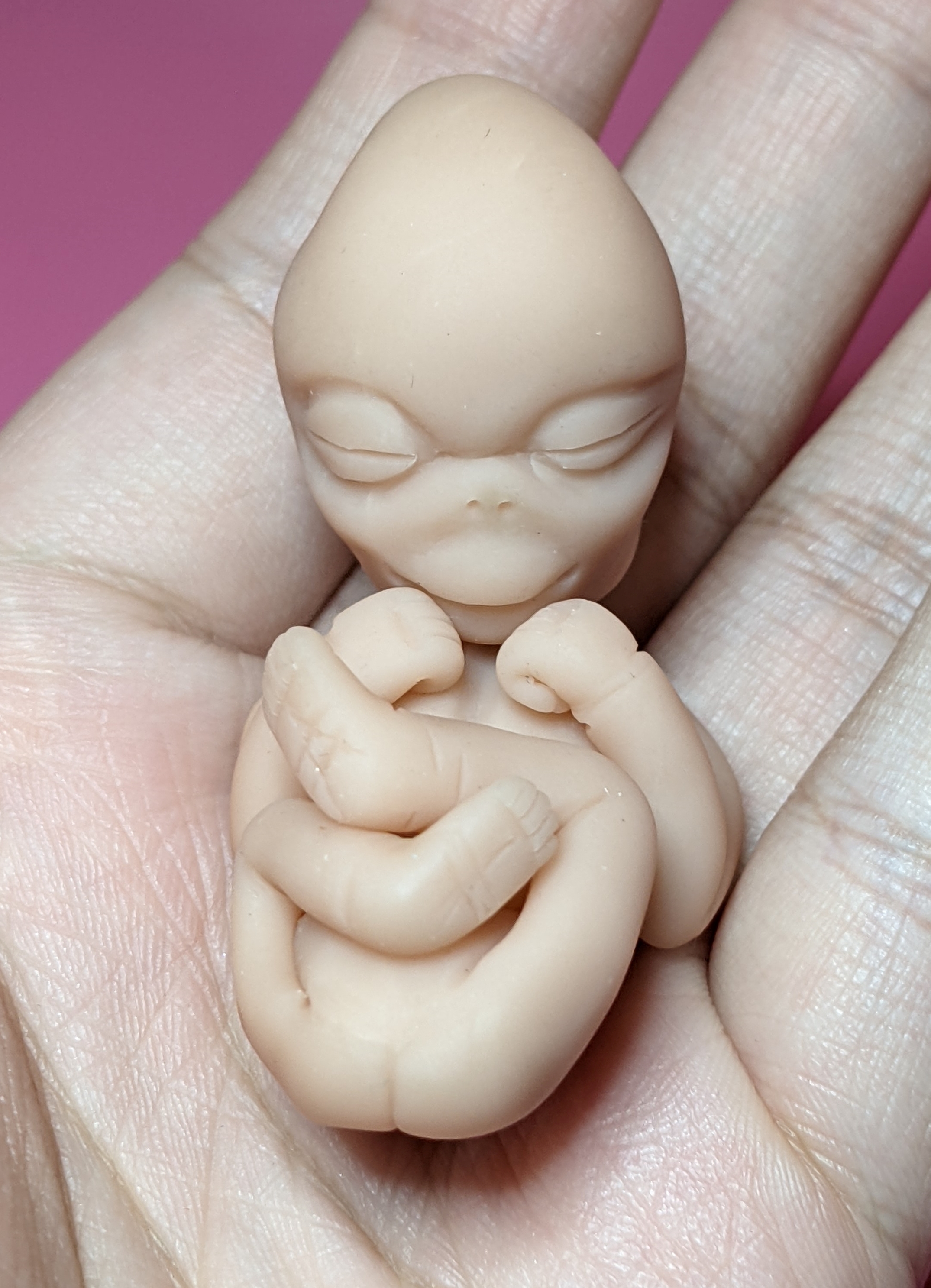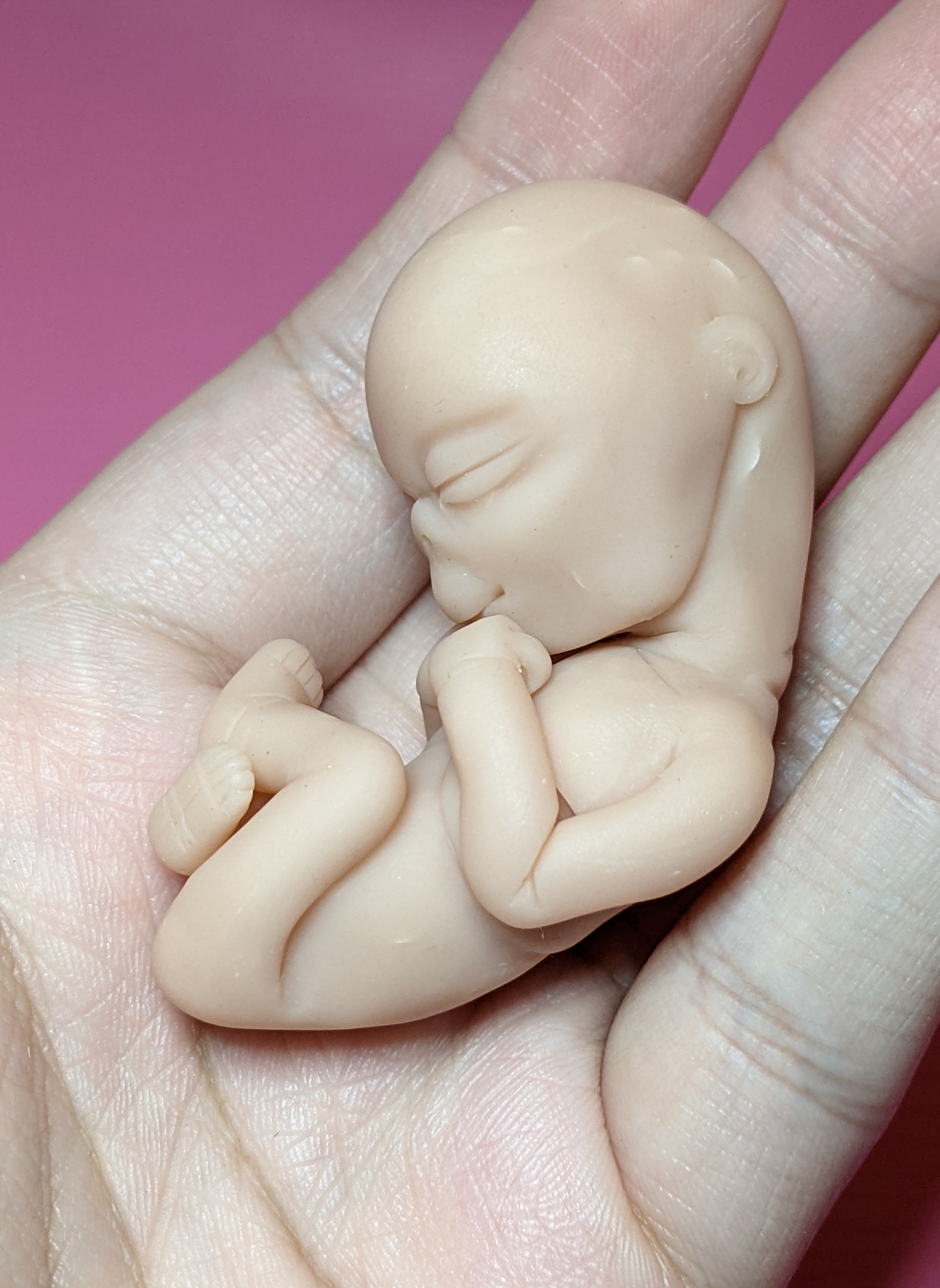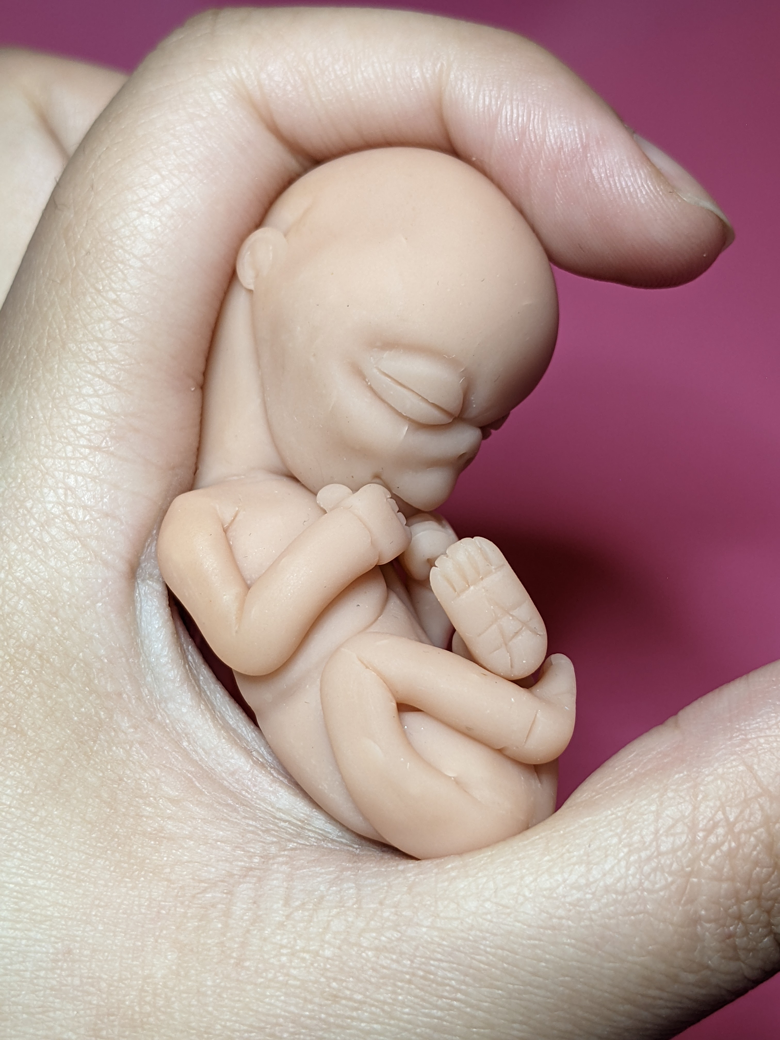 These pieces are handmade life-size (in length) polymer clay sculptures of babies lost during pregnancy. You may choose any gestation from 4 to 22 weeks.